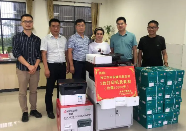 7月9日,永业行鄂西区党支部书记、总经理雷小明及副总经理李毓钦、助理总经理赵智伟一行前往枝江市问安镇代家店村开展精准帮扶慰问活动,代表公司向村委会捐赠两台打印机及耗材。枝江市自然资源和规划局局长王春波、代家店村书记等参加了本次活动。