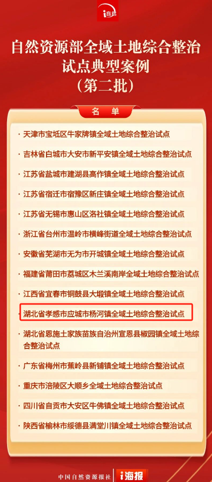 近日,从自然资源部传来喜讯,永业行全过程咨询服务的《2020年度应城市杨河镇全域国土综合整治项目》(以下简称“项目”)入选自然资源部全域土地综合整治试点典型案例(第二批),这是继孝南朱湖全域项目入选全域土地综合整治试点典型案例(第一批)之后,我司在该领域再次入围的成功案例,凸显了我司在专业领域内的深耕细作和领先实力。
